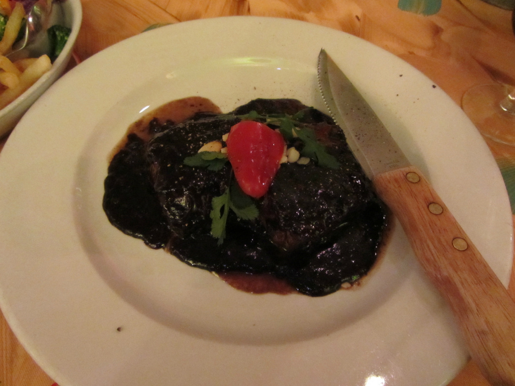 's Avonds uiteten in een lokaal bistro (maar wel #3 restaurant Capetown volgens Tripadvisor) 2 deuren verder. Ramon genoot van inktvis en dorado en voor Ingrid was er steak met chilli en chocolade saus.... een hemelsgerecht voor liefhebbers van pittig eten en chocolade. Afgesloten met een stukje cheesecake met 2 lepels.
