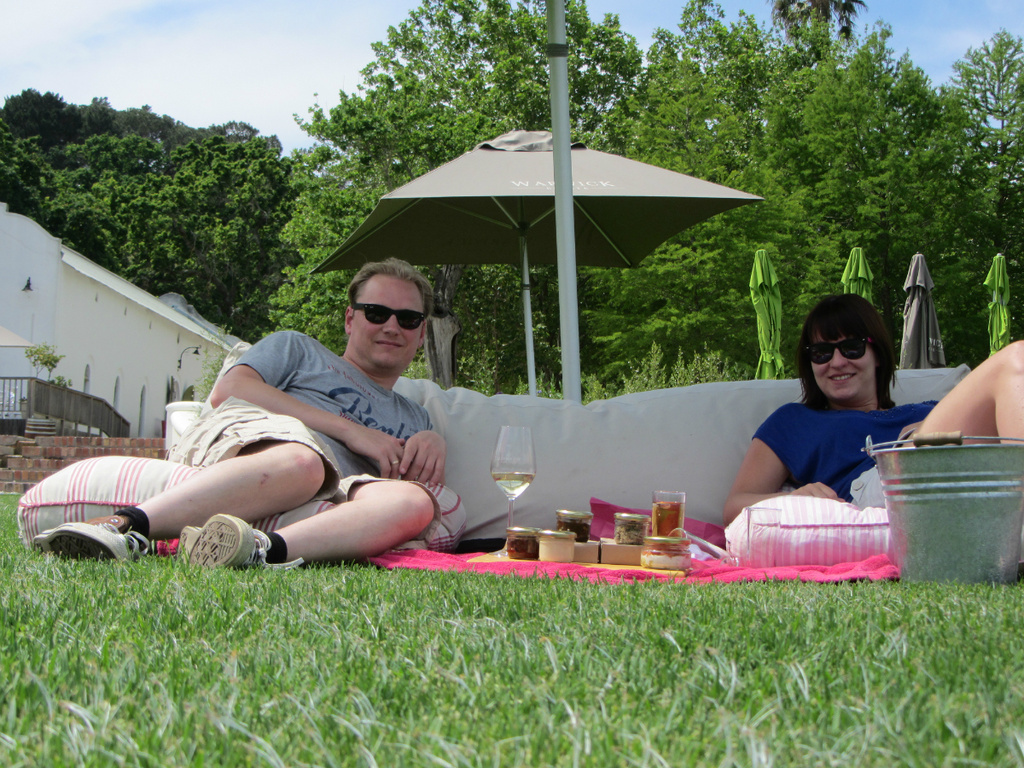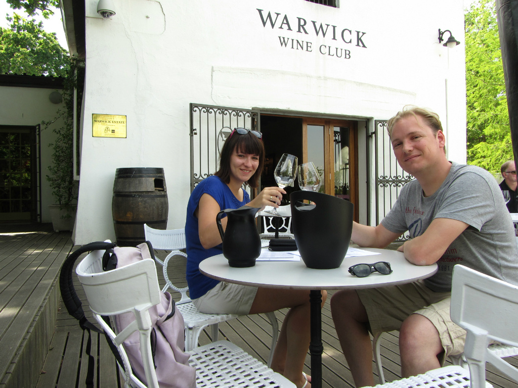 Vandaag vertrokken we uit Kaapstad en vervolgden onze rondreis naar Stellenbosch. Deze plaats staat bekend om zijn wine estates en goede restaurants. Via een Zuid Afrikaanse Groupon deal (Ingrid is een pro!) kwamen we bij Warwick Wine Estate voor een wine tasting, Big 5 Wine Safari en een picknick.