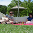 Na de safari was het tijd voor de picknick. We streken neer in het gras op lounge kussen. Vandaag is het zelfs 30 graden dus de parasol bood verkoeling. De picknick werd gebracht en de drankjes in een koeler met veel ijs. De picknick was heerlijk, 2 zelfgemaakte ciabatta's, vleeswaren, kaas, chutneys, tappenades en saladers en killer brownies.