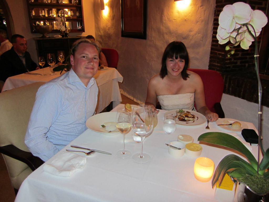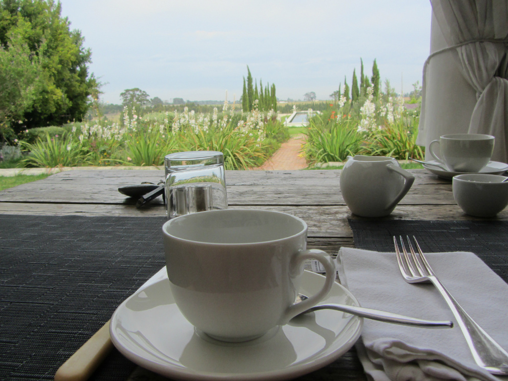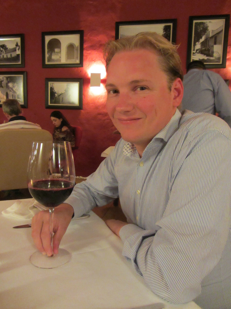 Nog een kleine oepdate na gisteravond. Rond half 7 vertrokken we naar Restaurant Rust en Vrede, een van de betere restaurants in de omgeving. Via een sprookjesachtige oprijlaan uit een Disneyfilm bereikten we de wine estate en restaurant. Buiten genoten we van een aperitief met uitzicht op de tuin en bergen. Voor het diner gingen we naar binnen. We kozen voor het 4 gangen menu met het dessert van het 6 gangen menu (een souffle!). Per gang hadden we keuze uit een vis, vlees of vegetarisch gerecht. Nu zijn we op culinair best wat gewend/verwend maar ze rust en Vrede heeft ons aangenaam verrast. Met name het tussengerecht van Ramon (risotto met bevroren parmasaanse kaas in truffelschuim) was uniek! De wijnen bleven achter bij het niveau van de gerechten, de wijn was weer te jong. Na een fijne avond, kwamen we (zonder honger ;-)) weer aan bij ons guesthouse. Jammer dat we hier maar 1 nachtje blijven. Lekker geslapen in een kamer die gestyled is door topper Gordon (of dat had gekund..), ontbeten met uitzicht op de tuin, gaan we nu door naar Hermanus. Vanmiddag gaan we wale watchen! Nu met weemoed de foto's van gisteren toevoegen aan deze blog.