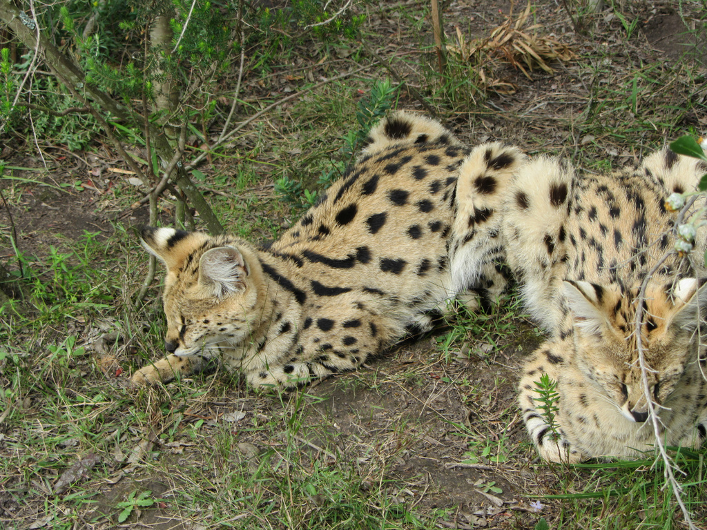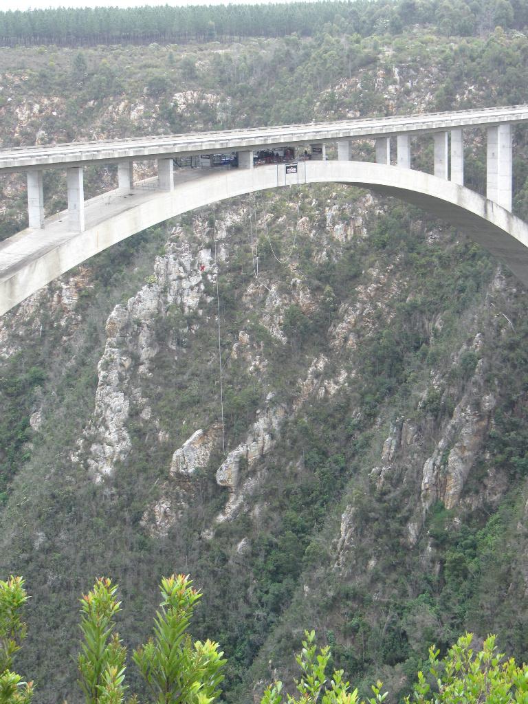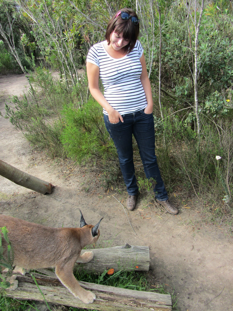 Maar eerst de Canopy tour. Op weg naar de Canopy locatie kwamen we eerst nog de hoogte bungyjump ter wereld tegen. We hebben even staan kijken, maar vriendelijk afgeslagen. Nu we dit zagen (ruim 200 meter hoogte), moesten we een canopy tour op 30 meter hoogte toch wel durven. We reden door naar de tour en kwamen een uur eerder aan. Gelukkig konden we instromen met de tour van 12 uur. Nog even snel wat eten in een 60's diner, heel raar in Zuid Afrika, maar wel grappig. Om 12 uur kwamen we erachter dat we de enige waren, niiiice, private tour! Guide Chris, Safety Officer Werner en de videogaaf gingen met ons mee. Eerst kregen we veiligheidsinstructies, toen omkleden en in de jeep naar het grote bos. Werner deed voor hoe het moest en daarna mocht Ingrid. Met gezonde spanning (...), deed ze de eerste slide. Natuurlijk even doen wat je niet moest doen volgens de guide (remmmen), maar het was ook zo spannend. Daarna Ramon en tenslotte de guide zelf. Gedurende de hele tour werd er goed op de veiligheid gelet, vertelde Chris over het bos en nam Werner foto's van ons met ons eigen fototoestel. We vonden het sliden super leuk. Eerst even wennen en niet teveel naar beneden kijken, gewoon doen! Na de tour kregen we nog wat te eten en drinken aangeboden en lazen we meer over het bedrijf. 85% van het personeel kwam uit de local community, wat we erg waarderen. Plettenberg Bay is namelijk weer een chique kustplaats, zeg maar The Hamptons van Zuid Afrika. Vlak voor je de baaij in draait zie je op de heuvels weer een township, met name Ingrid blijft het hier moeilijk mee hebben. Omdat Ingrid de Canopy toer zo goed gedaan had, zijn we smiddags nog meer katten gaan kijken bij het Tenikwa Wildcat Park. We mochten bij alle katten (cheetah