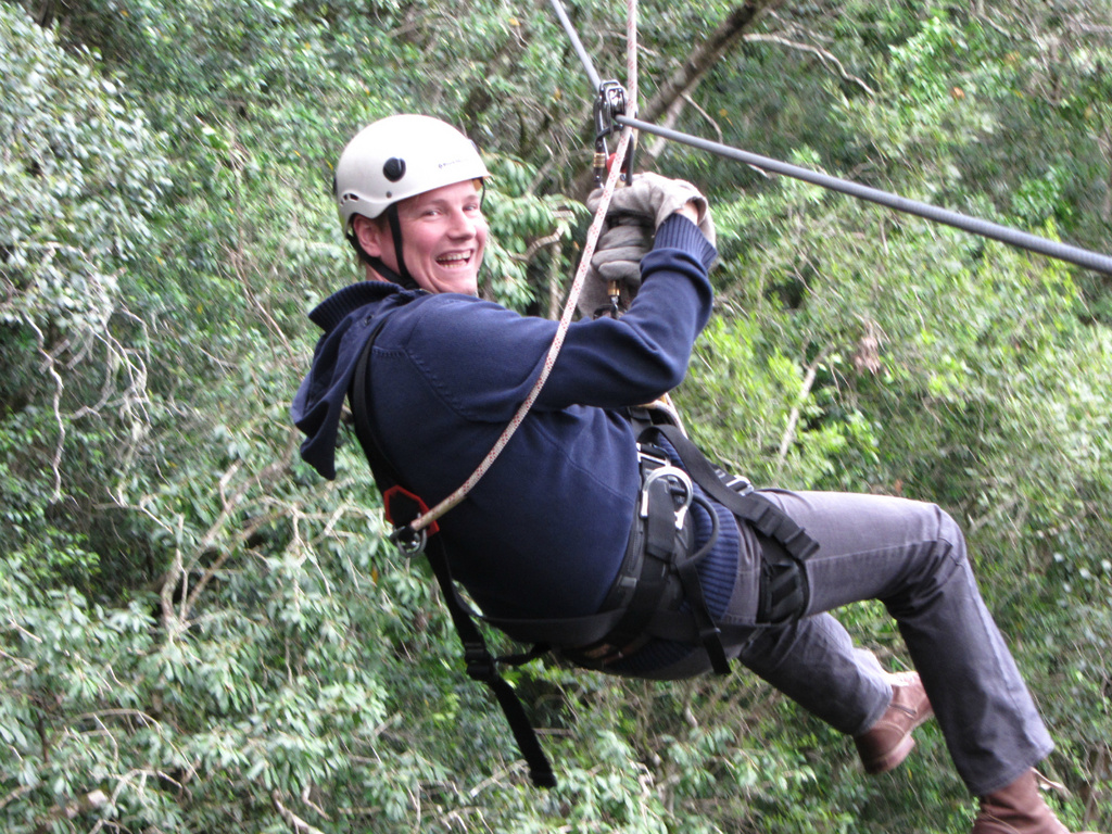 Vandaag een spannende excursie: wij gaan een canopy tour doen. Dit betekent dat je via ziplines tussen boomtoppen doorroetsjt. Spannend! Ingrid had het heel goed gedaan ;-) vandaar dat we daarna nog meer katten gingen bekijken.