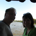 's Ochtends vertrokken we uit Ballito, net toen daar de zon begon te schijnen. Ingrid heeft nog een half uurtje een boek liggen lezen op het sundeck, maar toen moesten we toch echt door naar St. Lucia. Na 2 en half uur rijden kwamen we in St. Lucia aan. De receptionist vertelde ons dat er gisteren een storm was geweest en daardoor hadden ze nu geen elektriciteit. Wel was onze kamer ready en kregen we een noodlamp mee voor vanavond, al verwachten ze dat we rond 6 uur weer stroom zouden hebben. De kamer is weer mooi, sfeervol en Afrikaans ingericht. We gingen het stadje in voor lunch en souvenirs. Voor het eerst zitten we namelijk in een dorpje waar alles zich in 1 straat bevindt: restaurants, souvenir winkeltjes en hotels. We kunnen makkelijk lopen en het is een heel veilig dorp. Je moet alleen s nachts uitkijken voor hippo's, want ook zij komen graag in de hoofdstraat, omdat het gras altijd groener is bij de buren (nu echt). Ingrid wilde al heel lang souvenirs shoppen en nu vond ze wat ze zocht. In haar enthousiasme vergat ze te kijken naar de prijs... Ramon wees haar er fijntjes op dat ze nu voor 30 euro 3 mini souvenirs had gekocht. Ingrid is er (prijsbewust als ze altijd is) de hele middag sjaggi over geweest. Nu heeft ze besloten gewoon 30 jaar enorm te gaan genieten van die houten giraffe die ze gekocht heeft voor op de vensterbank.... grrr. Na het shoppen en de lunch, deed Ingrid een korte powernap. Tijdens haar slaapje zag Ramon een aap die de kamer in was gekomen! Al eerder zagen we baboons langs de snelweg, aapjes in bomen en nu zelfs in onze hotelkamer. Doornroosje mistte het aapje, maar we houden de deuren goed in de gaten. Om 4 uur gingen we aan boord van de boot voor onze hippo & croc tour. Natuurlijk waren er weer veel Nederlanders. Ramon dacht in ons gezelschap op het bovendek zelfs acteur Gerard Cox te ontdekken. De boottocht was erg mooi, we genoten van het uitzicht, de hippo's, crocs en vogels. Weer een heel andere kant van Afrika. Voordeel van Ingrid was dat we over een binnenmeer vaarden, dus deze keer geen ziekmakende golven. Het weer zat ook mee, vandaag weer 25 graden en aan het zwembad gelegen. Voor zwemmen is het nog te koud en ook 's avonds koelt het af, maar hier geen nachtvorst ;-). 's Avonds uiteten bij een lokaal restaurantje op advies van ons hotel. Errug lekker weer en binnen budget (het avondeten was net zo duur als de souvenirs om even een vergelijking te maken, 3 gangen & wijn inclusief, pfff). Morgen gaan we proberen deze blog up te loaden, het internet lijkt nu nog niet up (stroom was er weer om 19:00 uur+. Daarna gaan we zelf rondrijden door de Wetlands.